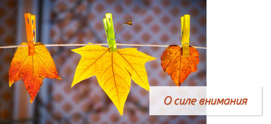 Внимание – это самый главный инструмент формирования окружения. Люди считают, что трудно выбирать осознанно «не думать о белой обезьяне», но на самом деле, мы все умеем концентрировать внимание, если мотив направить свое внимание — для нас весомый. Ну, т.е., когда на твоего ребенка нападает собака, ты очень внимателен в этом процессе, полностью весь присутствуешь. Или какая-то ситуация жизненная, которая важна, для тебя значима. Остается сделать для себя значимым внимание на красоте, внимание на гармонии, внимание на том, что хорошего прямо сейчас.